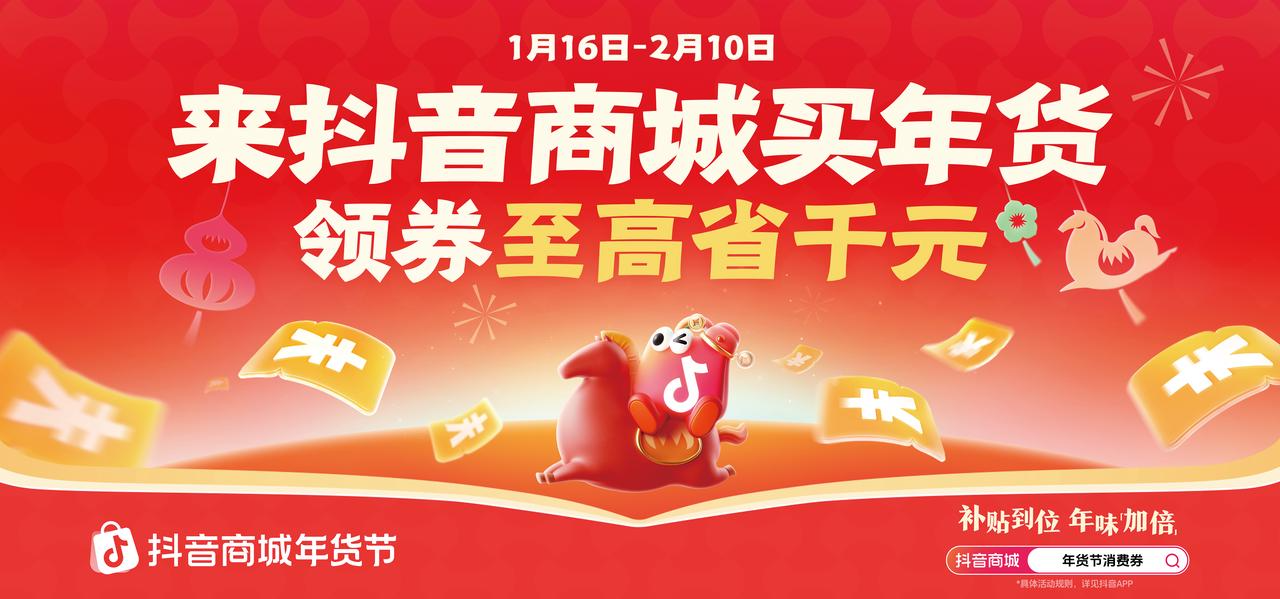 据悉,本次年货节主推“立减折扣”“一件直降”活动玩法,并在此基础上叠加平台出资消费券补贴。 活动持续至2月10日结束,为期26天。为助力商家抢抓年终消费机遇,抖音电商将提供充分的资源扶持,坚持推行商品卡免佣政策,帮助商家降本增收;持续优化算法与分发机制,提升优质商品曝光效率与转化效果;同时打造服饰美妆早春上新、车厘子开吃节等特色营销活动,通过直播、搜索、商城等渠道链接优质好物与平台用户,全链路驱动各品类商家共启新春好生意。