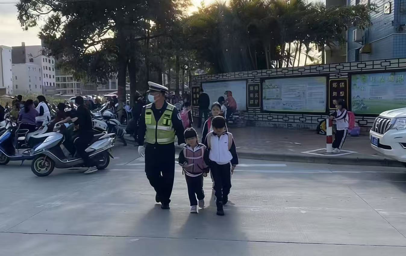 当日,惠州市惠东县公安局交管大队全面启动“护学岗”机制,组织警力提前到岗,在重点时段、重点路段筑牢安全防线,全力护航学生平安上学路。
